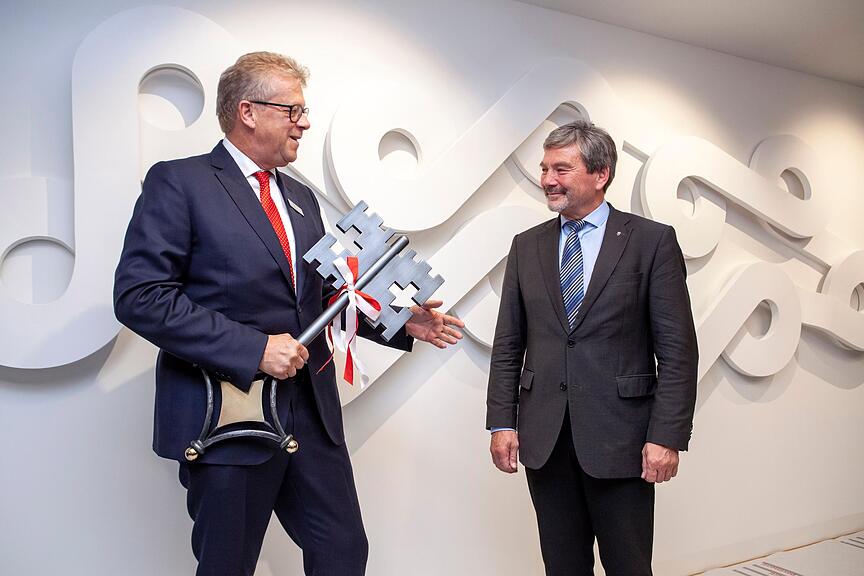 Für Landammann und Regierungsrat Res Schmid ist der Dorfplatz Stans ein Wahrzeichen des Kantons. Er lobte die ausserordentliche Zusammenarbeit mit der NKB. Im Namen der Regierung dankte er allen, die zum guten Gelingen dieses Umbaus beigetragen haben. Die Umnutzung Ende der Neunzigerjahre von der Bank zum Kanton verglich Res Schmid mit einer Schrift von Jeremias Gotthelf: «Von ‹Geld und Geist› zu ‹Regierung und Rat›. Die Gitterstäbe an den Fenstern sind entfernt als Zeichen der Öffnung, mit freiem Blick nach aussen und innen.» Weiter meinte Res Schmid, dass nach dem Exil im Container für die Kantonsangestellten die Arbeitsplatzqualität nun erheblich gesteigert werden könne. Er hielt aber mit aller Deutlichkeit fest, dass die Arbeiten im Container nicht gelitten hätten. Nun freue er sich auf die erste Sitzung am kommenden Dienstag im neuen Sitzungszimmer mit der verbesserten Aussicht auf die Kirche. Somit stünde andächtigen Entscheidungen nichts mehr im Wege, so der Landammann.