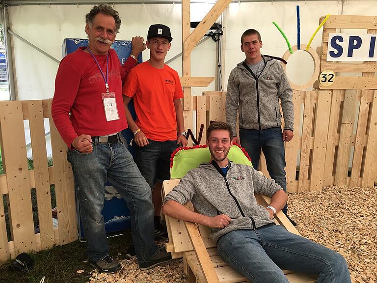 Rund um den See sind diverse Stationen des Spiels ohne Grenzen verteilt. Hier in Sempach gilt es Liegestühle zu bauen, aus Euro-Paletten, Altholz und Dekomaterialien wie Ballonen oder Stoffen. Das Ergebnis wird dann bewertet. Die schönsten Liegestühle sollen am Sonntagabend versteigert werden und Geld für einen guten Zweck generieren – für das Kinderhaus Seevogtey in Sempach.