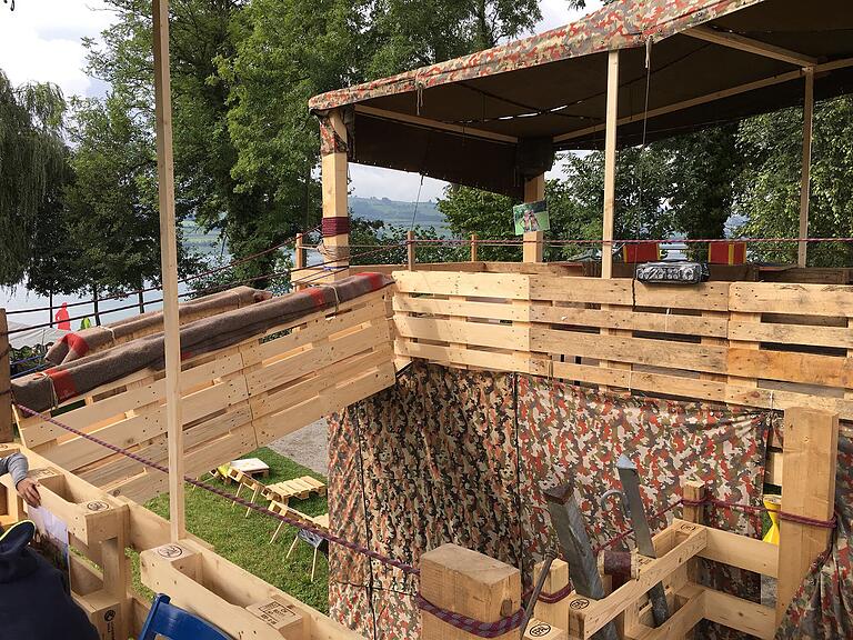 An der Erlebnisschau Sempach präsentieren sich die Jugendarbeit, die Jungwacht und der Blauring von Sempach zusammen mit der Pfadi Wartensee (Neuenkirch) und der Pfadi Bäseris (Hildisrieden). Sie haben eine zweistöckige Anlage aus Holzpaletten gebaut - inklusive Brücken und Ausblickstellen.