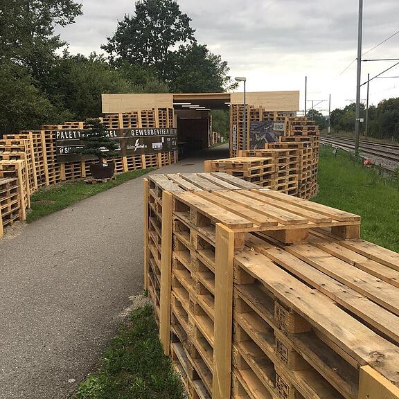Eine weitere Attraktion am See: Der Paletten-Tunnel mit Berufsausstellung.