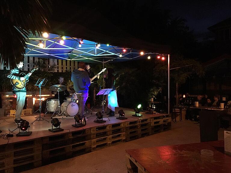Zum Abschluss des ersten Dynamo-Tages heizt die Band Esrin Sossai Quintett (Jazz/World Music) beim Caribbean Village in Nottwil ein.