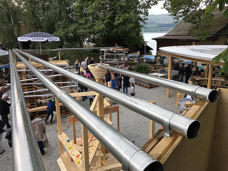 Die Anlage sei von Montag bis Donnerstag gebaut worden, erklärt Lea Geisseler von der Pfadi Wartensee. Tagsüber hätten drei bis vier Personen gearbeitet, am Abend deren zwanzig. Markus Ehrler, Mitglied der Jugendkommission Sempach, ist begeistert: «Früher hat jeder Verein ein eigenes Projekt gemacht. Jetzt organisieren wir uns zusammen und fördern so die Jugendarbeit.» Die Zeiten, wo sich Jungwacht, Blauring und Pfadi gegenseitig rivalisiert hätten, seien bei ihnen vorbei, ergänzt Lea Geisseler lachend.