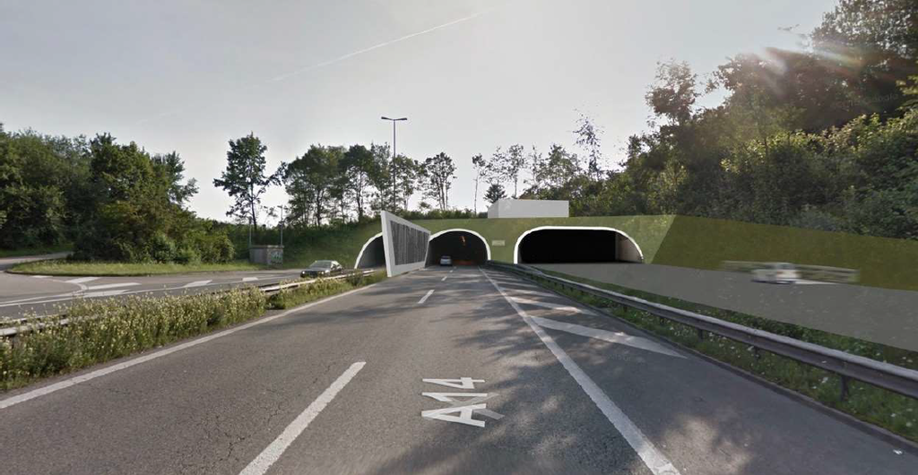 Auch beim Tunnel Rathausen sind Änderungen geplant. Vorgesehen ist eine dritte Röhre, um Platz für eine dritte Spur in beide Fahrtrichtungen zu schaffen. Das Eingangsportal des Tunnels soll nach Fertigstellung so aussehen: