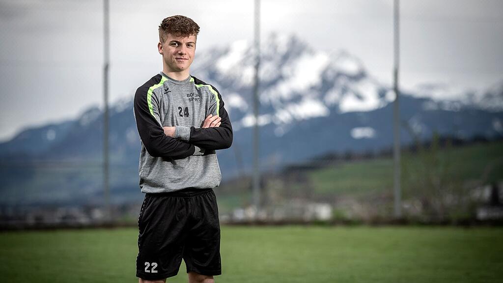 Fabian Hasler bewegt sich derzeit zwischen Fussball und Schule. (Bild: Pius Amrein (Immensee, 7. April 2022))