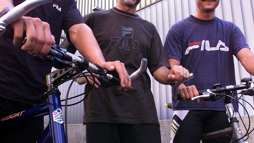 Jon Carl Tall im EVZ-Sommertraining im Jahr 2000 mit Reto Kobach (links) und André Künzi. (Bild: Werner Schelbert)