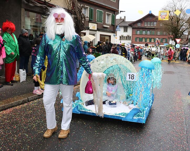 Das Motto «Ab i Vergniägspark» wird fantasievoll umgesetzt. Wer will noch in den Europapark gehen, wenn es in Kerns an der Fasnacht doch das volle Programm mit Euromir, Legoland und Unterwasserwelt gibt? Sogar eine Geisterbahn und ein Candy-Shop sind dabei.