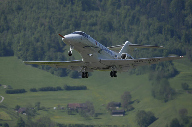Der zweimotorige Business-Jet hob nach nur knapp 600 Metern von der Startbahn ab und stieg in rund drei Minuten auf rund 3000 Meter. Der Erstflug führte über den Grossraum Zentralschweiz - von Altdorf über Engelberg bis hin zum Brünig.