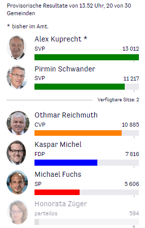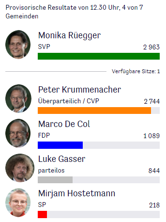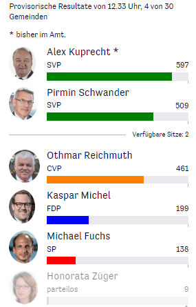 Die Zwischenresultate zum Ständeratsrennen im Kanton Schwyz ( 4 von 30 Gemeinden):