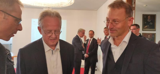 Aus dem Luzerner Regierungsgebäude: Inzwischen ist SVP-Ständeratskandidat Franz Grüter eingetroffen. Er ist guter Dinge: Bei den Nationalratswahlen liegt er parteiintern an der Spitze.