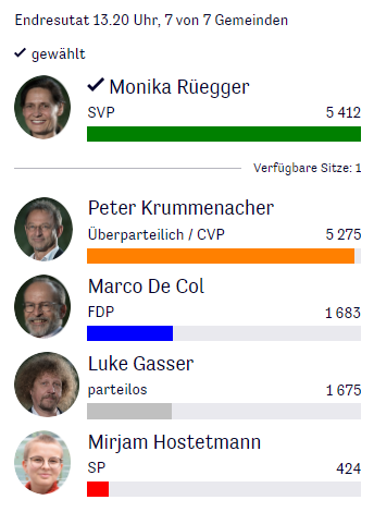 Ein nächster Zwischenbericht aus dem Kanton Schwyz zu den Ständeratswahlen (11 von 30 Gemeinden):