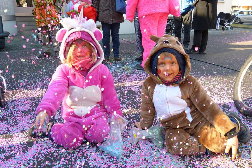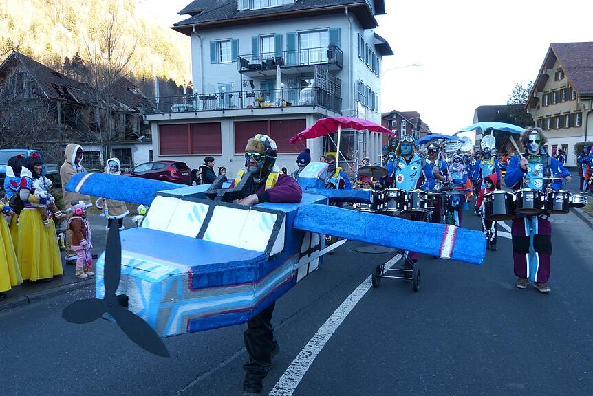 Angeführt von der Guugenmusig Ribi-Häxä mischten sich viele Eltern mit ihren Kindern unter die Umzugsteilnehmer und verliehen dem bunten Treiben einen familiären Charakter.