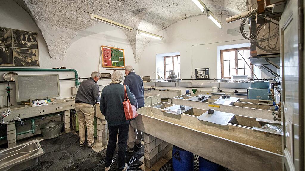 Viele neugierige Besucherinnen und Besucher tummeln sich am vergangenen Samstag am Tag der offenen Tür im Korporationsgebäude in Luzern. Rund 7000 kleine Forellen schwimmen in jedem der fünf steinernen Becken umher. Im historischen Gebäude am Reussteg verbirgt sich etwas, das von aussen kaum zu erahnen ist: eine Fischaufzuchtanlage. Deren Ziel ist es, den Fortbestand der Seeforelle zu sichern.