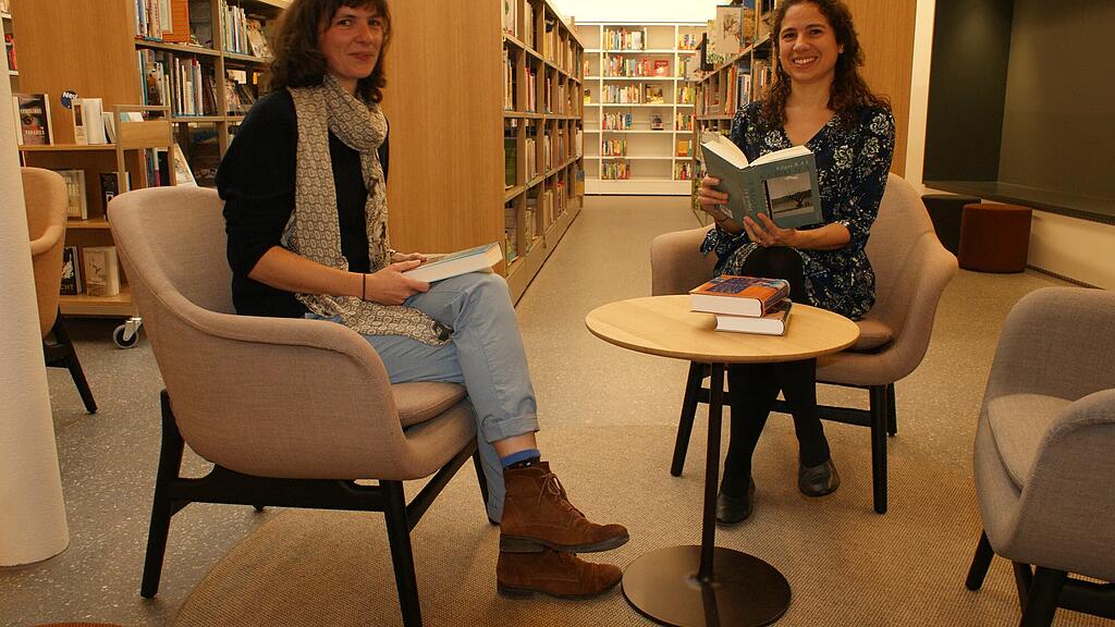 Martina Wüthrich (links) und Carla Biasini, die Co-Leiterinnen der Kantonsbibliothek, in ihrem Reich. (Bild: Rafael Schneuwly (Altdorf, 30. Oktober 2021))