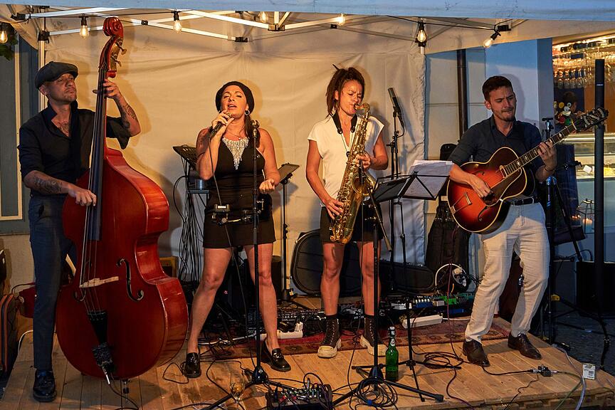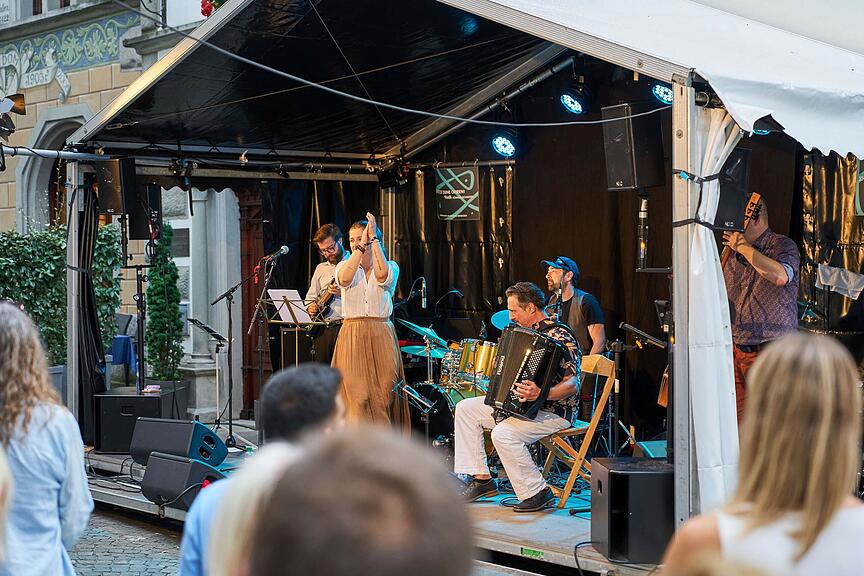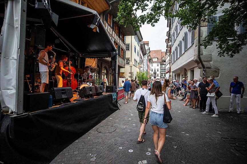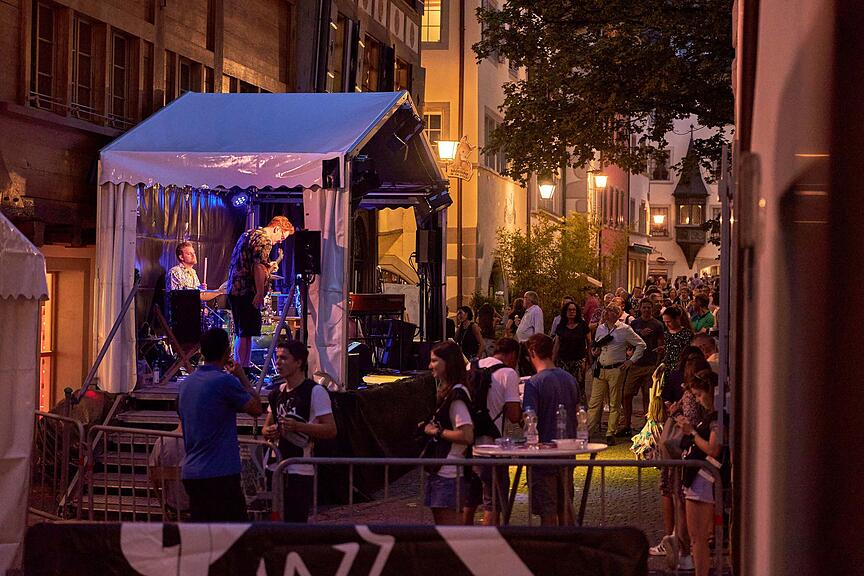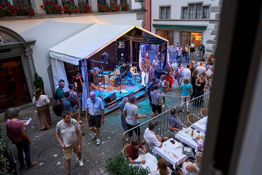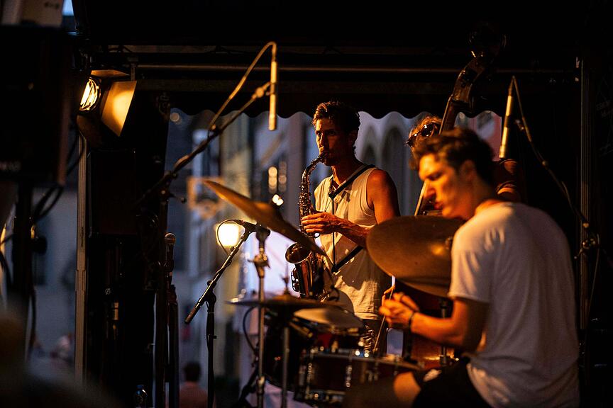 «The Jazz Trio» auf der Bühne beim Schwanenplatz.