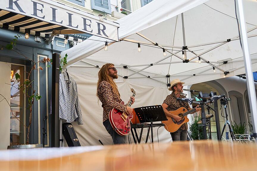 Vor dem Felsenkeller spielen AKIM und Special Guest mit den Gitarren.