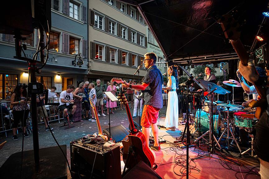 Die Bühne beim Gerbiplatz, wo die jungen Talente der Musikschule Zug aufspielen.
