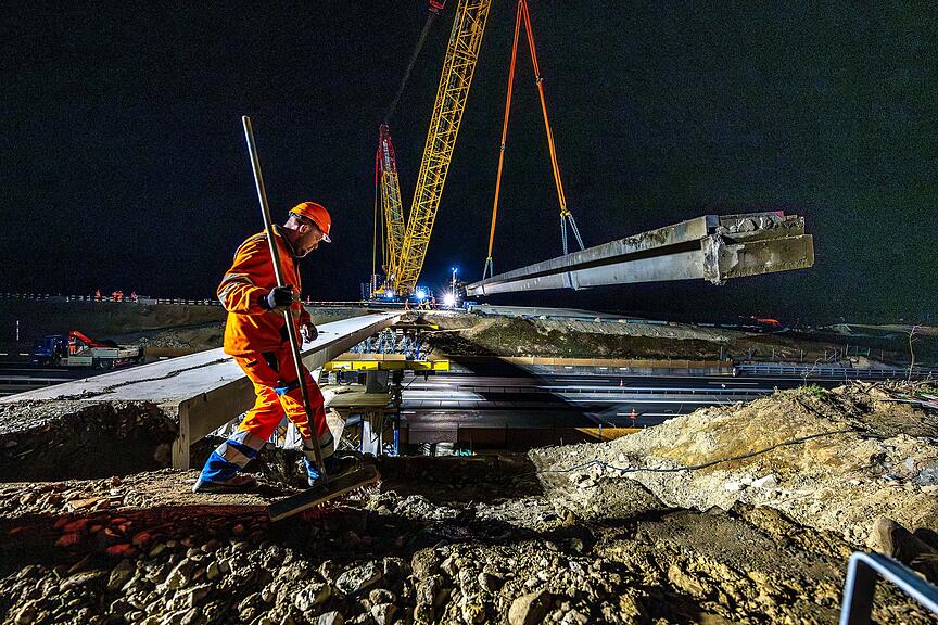 Länge rund 52 Meter von Fahrbahnübergang zu Fahrbahnübergang – Gewicht mittlerer Träger rund 135 Tonnen – Gewicht äussere Träger mit Randelementen je rund 170 Tonnen. (haz)