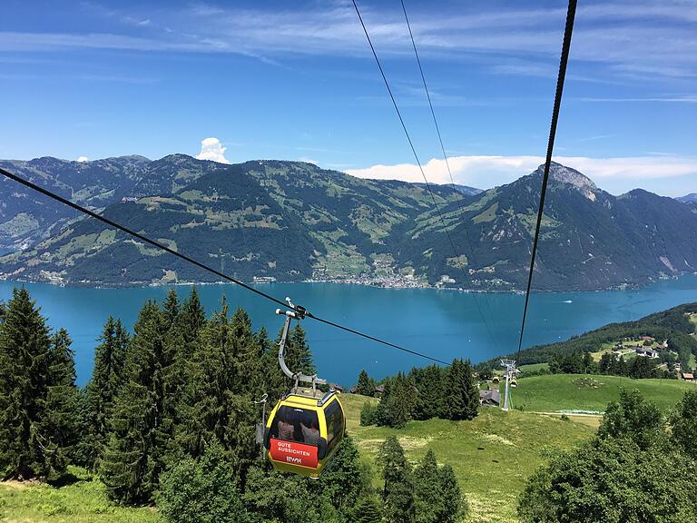 Nicht weniger als fünf Luftseilbahnen fahren im kleinen Bergdorf. Der kommende Sonntag, 24. Juni, ist ihnen gewidmet. Nebst abenteuerlichen Fahrten gibt’s auch Geschichten über die Bahnen zu hören. Sie fahren hinauf auf die Alp, zu den Bergheimet, zum Chalet, zum Bergrestaurant oder ins Wandergebiet. Mit fünf Seilbahnen, deren Talstationen sich im Dorf in einer Gehdistanz von nur 750 Metern befinden, schwingt Emmetten in Nidwalden obenaus. Dies im Kanton mit der höchsten Seilbahndichte der Schweiz.