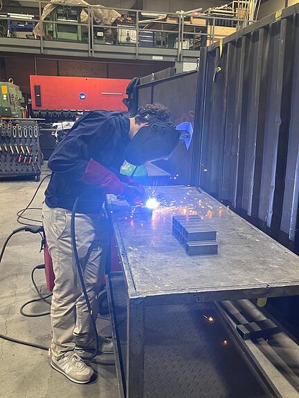 Nach einer kurzen Begrüssung durch Gemeindevizepräsident Markus Zgraggen führte Franz Epp, Geschäftsleiter von Steibock AG, die Teilnehmerinnen und Teilnehmer durch die Firmenräumlichkeiten. In einer kurzen Firmenpräsentation zeigte er die interessanten Tätigkeitsfelder der Firma. Nebst Metall- und Stahlbau werden Baugeräte gehandelt, vermietet und repariert. Ein weiterer Geschäftszweig ist der Vertrieb sowie der Service von Hörmann-Produkten. Die Teilnehmenden durften im Anschluss in der Werkhalle selbst Hand anlegen und an der Werkbank das Schweissen ausprobieren.