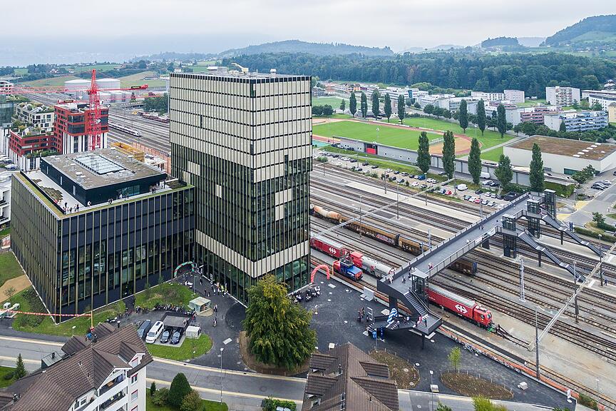 Hier geht es zügig voran: Die Rede ist vom Suurstoffi-Areal in Rotkreuz. Die Bauarbeiten für verschiedene Geschäftshäuser sind in vollem Gange. Nun sollen zwei weitere dazukommen, wie aus einem Baugesuch hervorgeht.