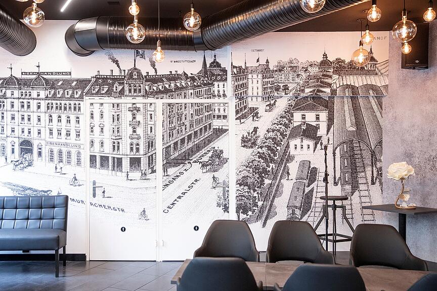 Das Lokal wurde ganz neu gestaltet. Die Bar soll gemäss den Eigentümern die lange Geschichte der Lokalität rund um den ehemaligen «Centralhof» wiederspiegeln, aber auch ein moderner Treffpunkt sein. Das Prunkstück der Bar passt da voll ins Konzept: Eine alte Ansicht des Gebiets Zentralstrasse/Bahnhof ziert die Wand: