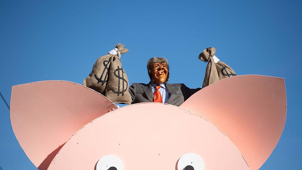 Kriens hat den Gäldschiisser. Der Quartierverein Obernau mit seinem Wagen am Fasnachtsumzug.
