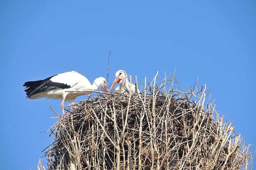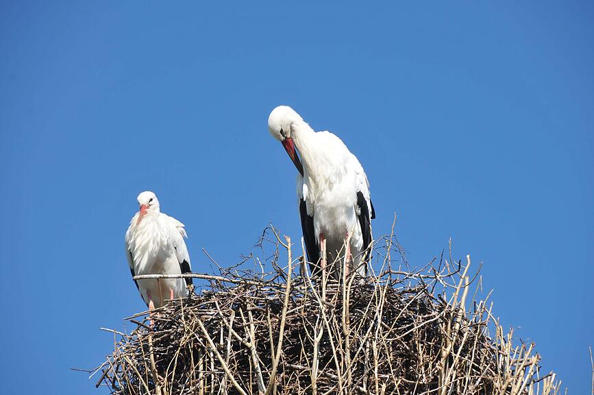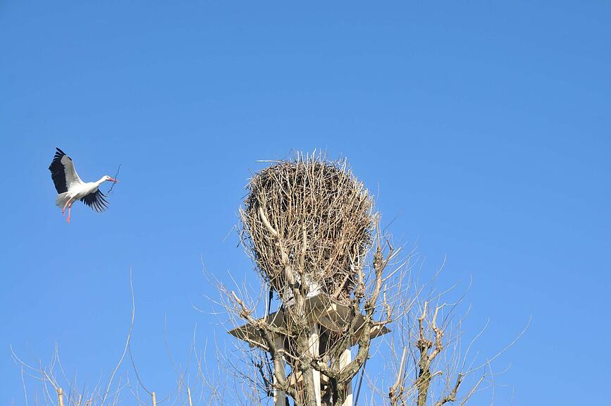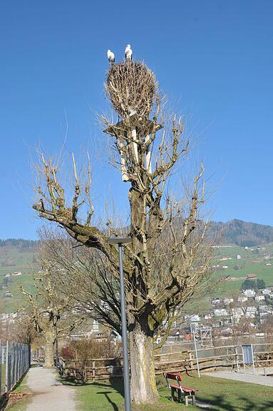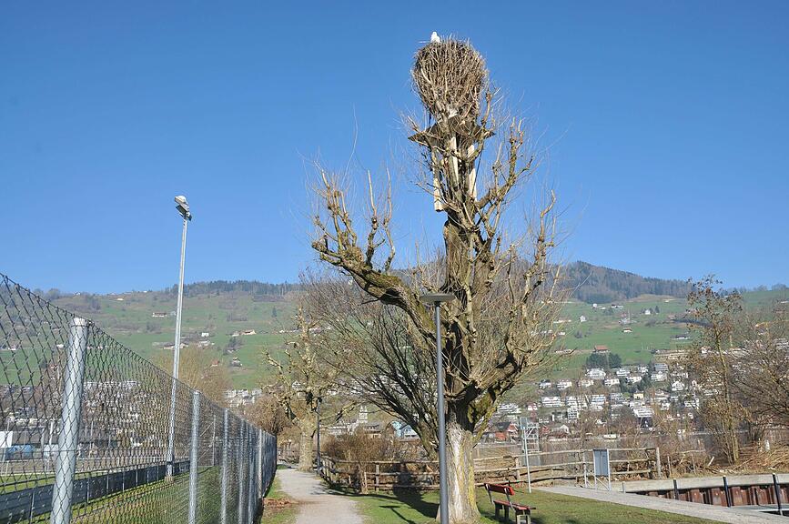 Der Baum mit dem Storchennest musste gefällt werden. Am neuen Ort fühlen sich die Störche auch wohl.