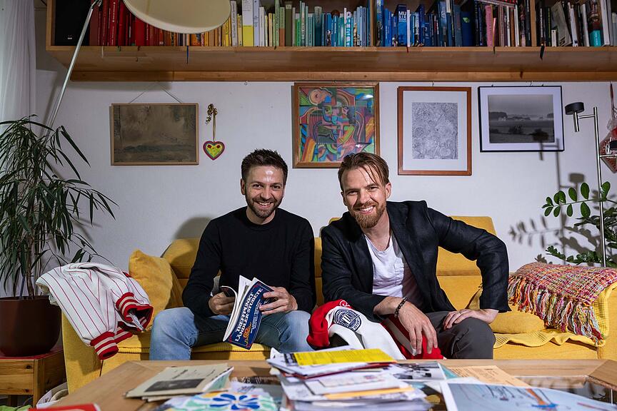 Die Stubete Gäng (oder zumindest ein Teil davon) in der Stube: Moritz (links) und Aurel Hassler freuen sich auf die diesjährigen Swiss Music Awards.