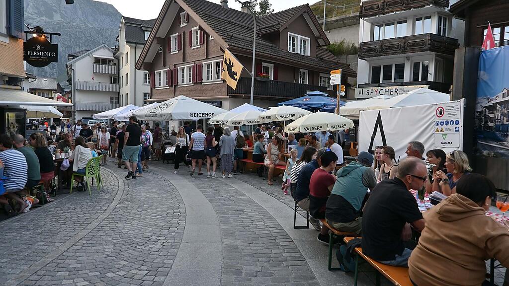 Am dritten verkehrsfreien Samstag lud Andermatt zu einer grossen Tavolata ein. Bei schönstem Wetter und sehr warmen Temperaturen flanierten unzählige Menschen durch den Dorfkern. Bereits bei der Postillion Bar waren die ersten Tische auf der Strasse zu sehen – und so ging es fortlaufend bis zum «Schwarzen Bären». Es strömten Einheimische und Touristen durch die Gassen, ebenso viele Zweitwohnungsbesitzer und Gäste aus dem Unterland.
