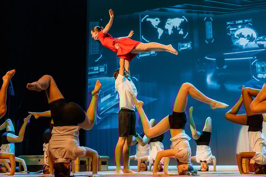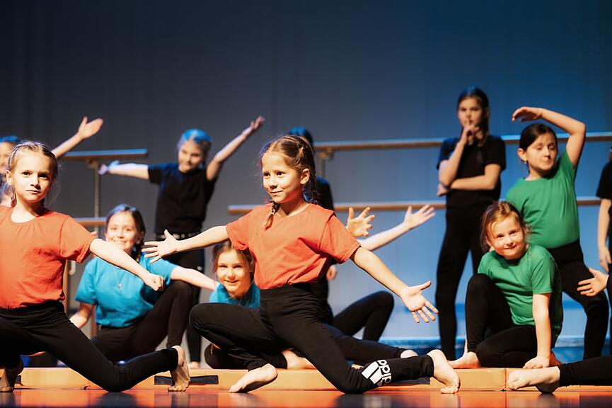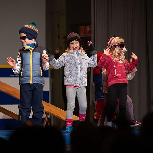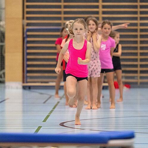 Die Geräteturn-Kids traten unter dem Motto «Pink Panther» auf, gefolgt von den Geräteturn-Riegen von K1 bis K7. Besonders K3 begeisterte mit einer temperamentvollen Einlage in schwarzen Miniröckli. Die Riegen K4 bis K7 präsentierten ihr Können unter dem Titel «007 – Lizenz zum Turnen». Unter der Leitung von Deborah Schriber überzeugten sie mit sauberer Technik und einem coolen Outfit mit Sonnenbrille und Schlips.