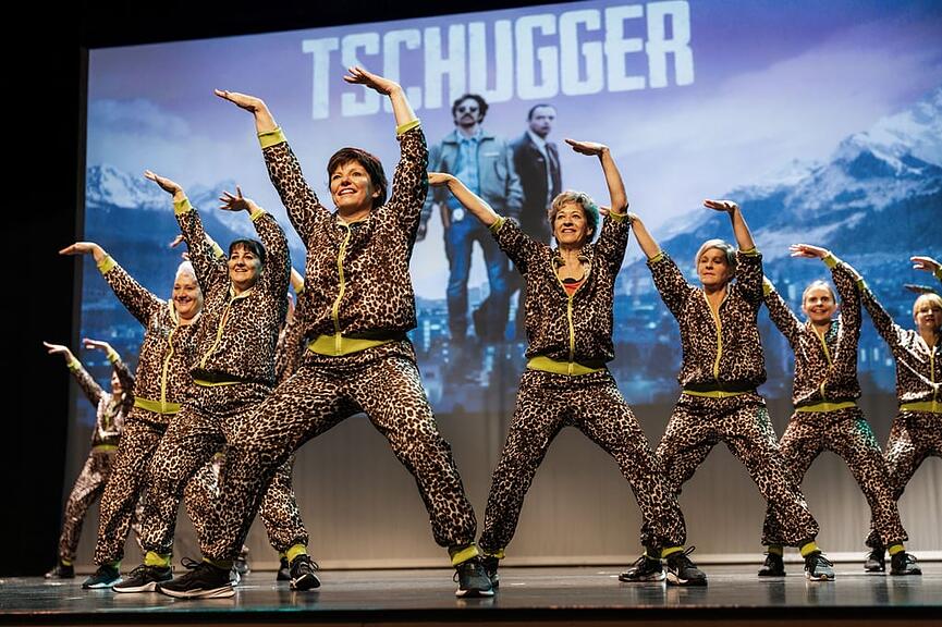Zur Lösung des Falls trugen sie jedoch ebenso wenig bei wie die beiden Dance-Aerobic-Riegen. Als «Rosenheim-Cops» in charmanten Polizeiuniformen und als «Tschugger» waren sie zwar schwungvoll unterwegs, konnten den Täter aber nicht überführen. Letztere überzeugten mit einem äusserst temporeichen, synchronen Auftritt voller Strahlkraft – choreografiert von Vereinspräsidentin Sandra Bircher.