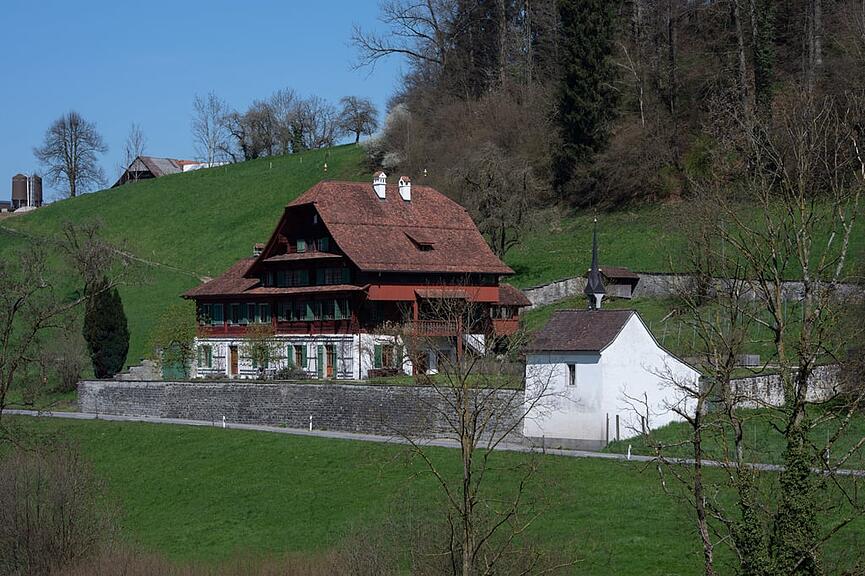 In der zweiten Hälfte des 19. Jahrhunderts ging das Schlössli durch die Heirat der Enkelin von Landammann Vincenz Rüttimann (1769-1844) mit Franz Albert Schwytzer von Buonas an die Familie Schwytzer von Buonas aus Luzern über. Bis heute befindet sich das Schlössli an der Götzentalstrasse 95 im Eigentum der Familie Schwytzer von Buonas. Der stattliche Landsitz sieht aus wie ein grosses Bauernhaus. Doch der Eindruck täuscht. Das Haus ist ein historisches Juwel.