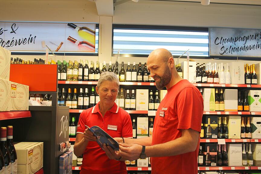 Tatsächlich wirkt der Laden beim Rundgang viel grösser als vorher. Gleich beim Eingang finden sich Früchte und Gemüse auf einem zentral angeordneten Stand, in den Gestellen an der Stirnseite Brot und Backwaren. Fleisch- und Wurstprodukte nehmen mehr Raum ein, es gibt regionale Ware. Das Weinangebot ist grösser als früher. Eine Käsevitrine präsentiert das regionale Sortiment.