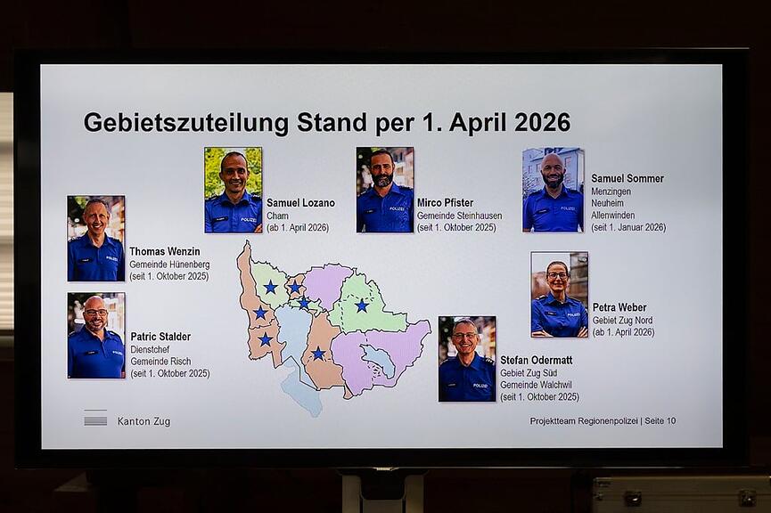 Die Beamten «sind regelmässig in ihren jeweiligen Einsatzgebieten präsent und stehen der Bevölkerung als direkte Ansprechpersonen zur Verfügung», so die Zuger Polizei. Auf der Website des Kantons ist nachlesbar, wer für welche Gemeinde zuständig ist. Auch die entsprechenden Kontaktdaten sind dort zu finden.