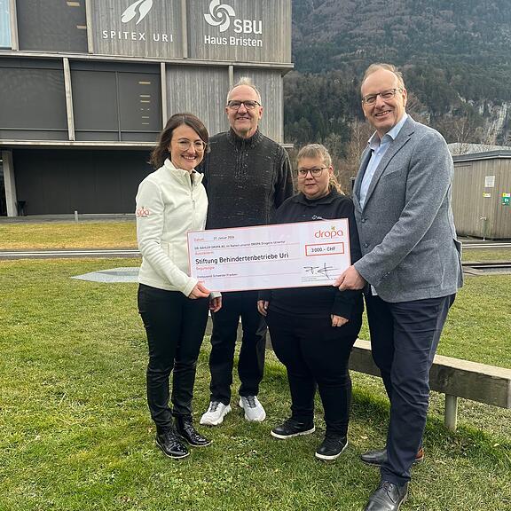 Anlässlich der Wiedereröffnung nach ihrem Umbau spendet die Drogerie Urnertor in Altdorf 3000 Franken an die Stiftung Behindertenbetriebe Uri, wie es in einer Mitteilung heisst. Die Scheckübergabe fand am Dienstag, 27. Januar 2026, statt.