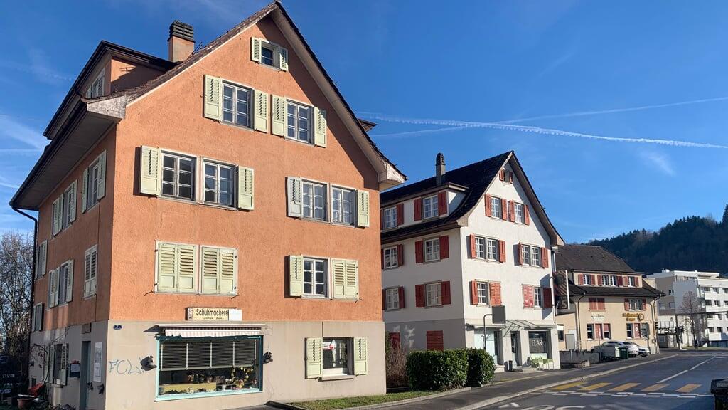 Das Haus im Vordergrund gehört der Gemeinde Ebikon und soll verkauft werden. Die Anliker-Gruppe plant die Neuüberbauung der gesamten Häuserzeile.