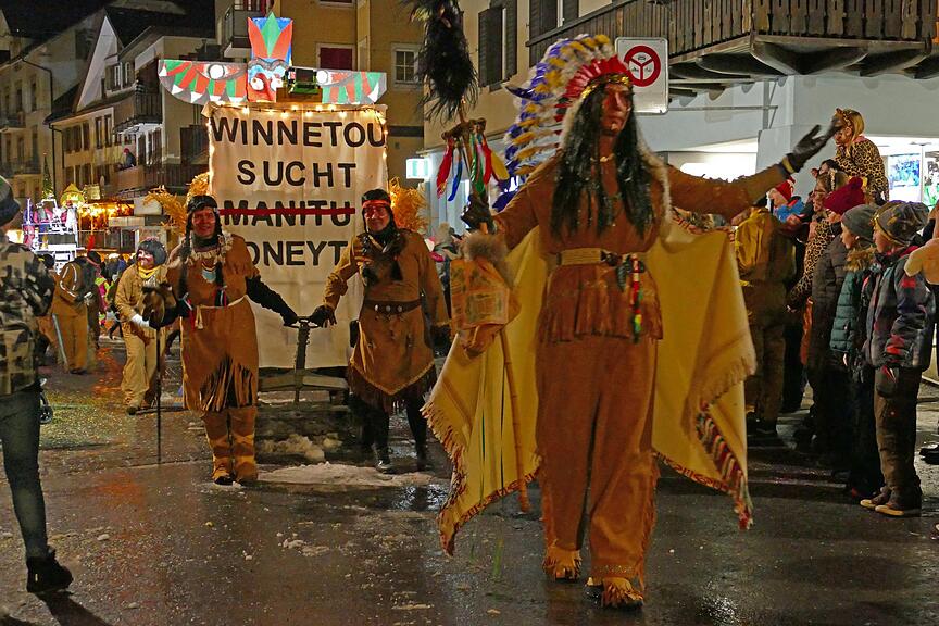 Dass die missglückte Brautschau der Titlis-Bahnen mit der Brunni-Bahn nicht fehlen durfte, war klar. Und auch diesmal war das Werben von dem im Regen stehenden Bräutigam um die attraktive Braut eine vergebliche Liebesmühe. Dass Winnetou nicht Manitu, sondern «Moneytu» sucht, kam ebenso zu Tage, wie die für die Pflegebetten eine Untermass aufweisende Breite der Türrahmen beim Altersheim-Neubau. Aufgelegt war auch das Thema des dank der Einsprachen von Andermatt nach Engelberg gekarrten Schnees für die Präparation der Titlis-Schanze.
