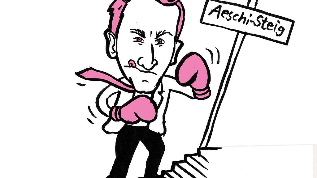 Nationalrat Thomas Aeschi soll seine eigene Treppe erhalten. Ein Denkmal für das Handgemenge, das er sich im letzten Juni mit Bundespolizisten geliefert hat. Wir erinnern uns: Im Bundeshaus-Foyer fand ein Fototermin mit dem ukrainischen Parlamentspräsidenten statt. Der SVP-Nationalrat wehrte sich gegen zwei bewaffnete Bundespolizisten, die ihn nicht auf die Treppe lassen wollten.
