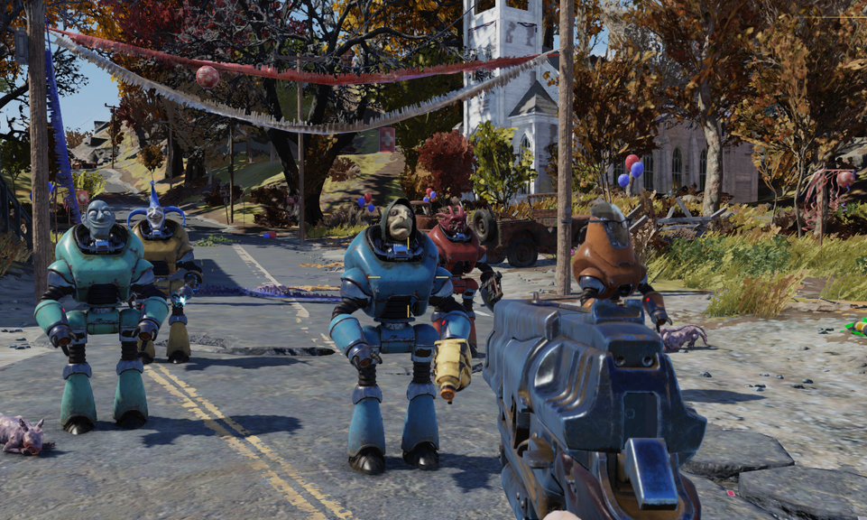 Ein Roboter mit Zylinder schwebt durch die Gegend und ruft blechern: «Willkomme, willkomme!» Er begrüsst die Besucherinnen und Besucher des US-amerikanischen Dörfchens Helvetia zur dortigen Fasnacht (ausgesprochen «Fasnakt»). Diese kuriose Szene spielt sich dieser Tage im Online-Videospiel «Fallout 76» ab. Vom 14. bis 28. Februar kann man hier miterleben, wie die Fasnacht im Jahre 2102 aussehen könnte. Das Fallout-Universum spielt nämlich in der nahen Zukunft, nachdem die USA weitgehend von einem Atomkrieg verwüstet worden sind.