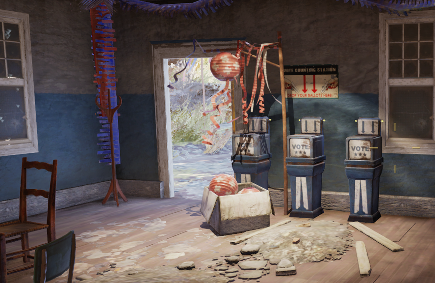 Trotz gemächlichem Umzug – ringsum geht es wild zu und her. Mutierte Tiere fallen über die Prozession her, gemeinsam müssen die Spielerinnen und Spieler den Weg frei schiessen. Dabei explodieren mehrere Häuser des Dörfchens, dessen Vorbild die tatsächlich existierende Kommune Helvetia in West Virginia ist. Die Siedlung wurde 1869 von Schweizer Emigranten gegründet.