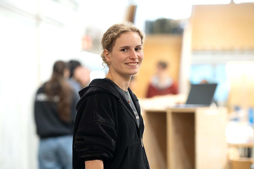 Auch Ronja Ziswiler, Architekturstudentin im zweiten Semester, schätzt das Arbeiten im Team und mit Lernenden sehr. Am Projekt nehme sie im Rahmen des Entwurfsmoduls Struktur des Bachelorstudiengangs Architektur teil. Als gelernte Schreinerin könne sie sowohl Inputs geben als auch von den anderen Teammitgliedern lernen. «Es ist schön, dass wir das Thema Kreislaufwirtschaft auf praktische Weise erfahren und daraus lernen können.»