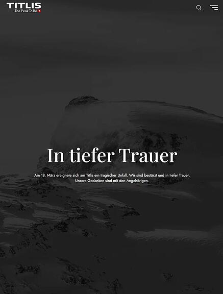 Die Titlis-Bahnen sind «in tiefer Trauer», wie sie auf der Webseite schreiben. Die Webseite ist in schwarzer Farbe gehüllt. «Am 18. März ereignete sich am Titlis ein tragischer Unfall. Wir sind bestürzt und in tiefer Trauer. Unsere Gedanken sind mit den Angehörigen», heisst es weiter. (rem)