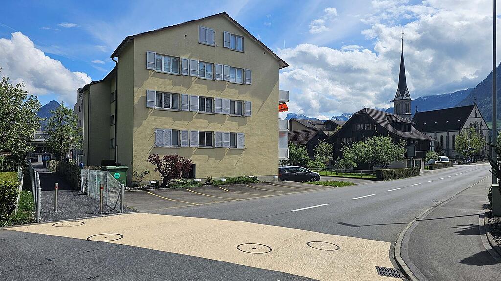 Eine der ersten umgesetzten Massnahmen ist die Fussgängerfurt bei der Verzweigung Bürgenstockstrasse/Kreuzmatte.