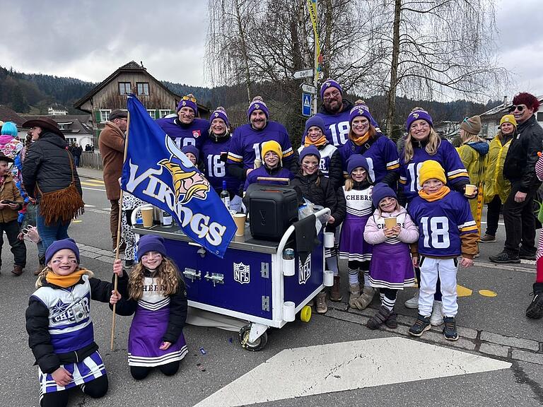 Die Gruppe Triple A wartet auf den Anpfiff. Die drei Familien aus Wauwil und Egolzwil sind als NFL-Team Minnessota Wikings unterwegs. 14 Leute umfasst das Roster. Seit sechs Jahren haben sie so gemeinsam Spass. Touch Down!