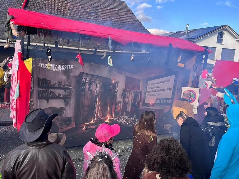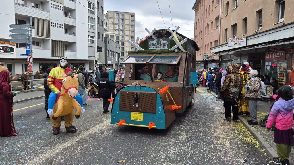 Die Wagebuugruppe Haselmatt hat aus dem Vollen geschöpft und ein ausgewachsenes Schwingermobil gezimmert mit allem drum und dran. Auch Esaf Muni Max ist beim Umzug mit dabei.