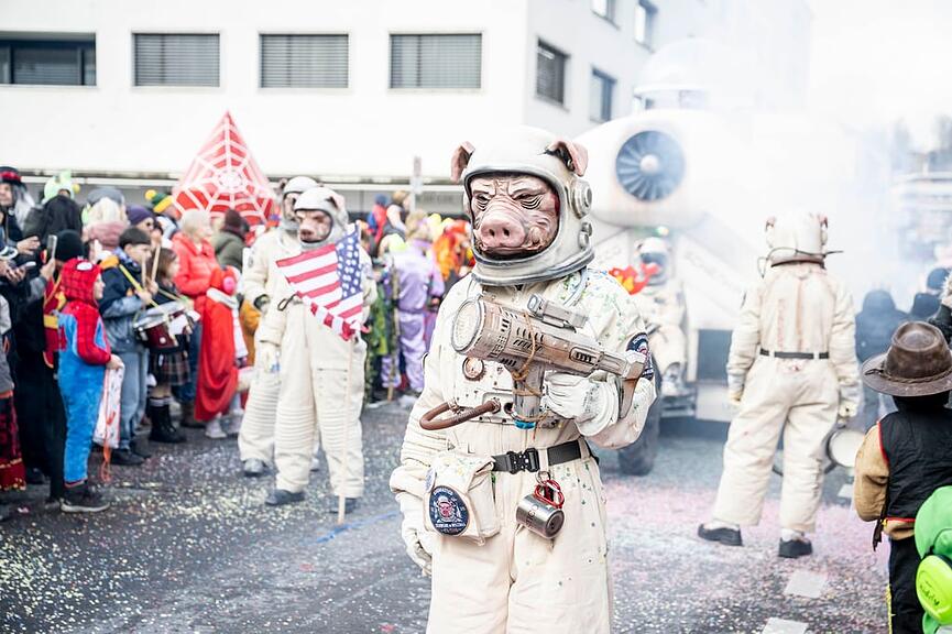 An den Fasnachtsumzügen vom Sonntag werden gerne aktuelle Ereignisse politischer und gesellschaftlicher Natur persifliert, aber ebenso fantasievolle Sujets, bei denen vor allem die handwerkliche, kreative Kunst beim Wagenbau und der «Grende» im Vordergrund steht.