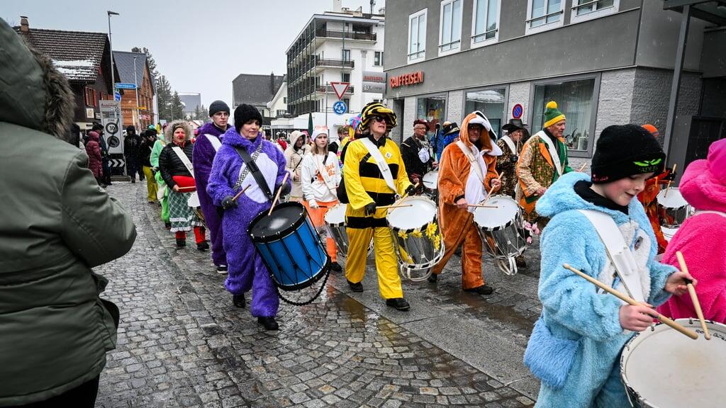 Der diesjährige Umzug wurde traditionell von der Andermatter Katzenmusik angeführt. Mit schrillen Trompeten und Posaunen, mit Tambouren und Pauken trommelten sie den legendären Katzenmusik-Marsch.