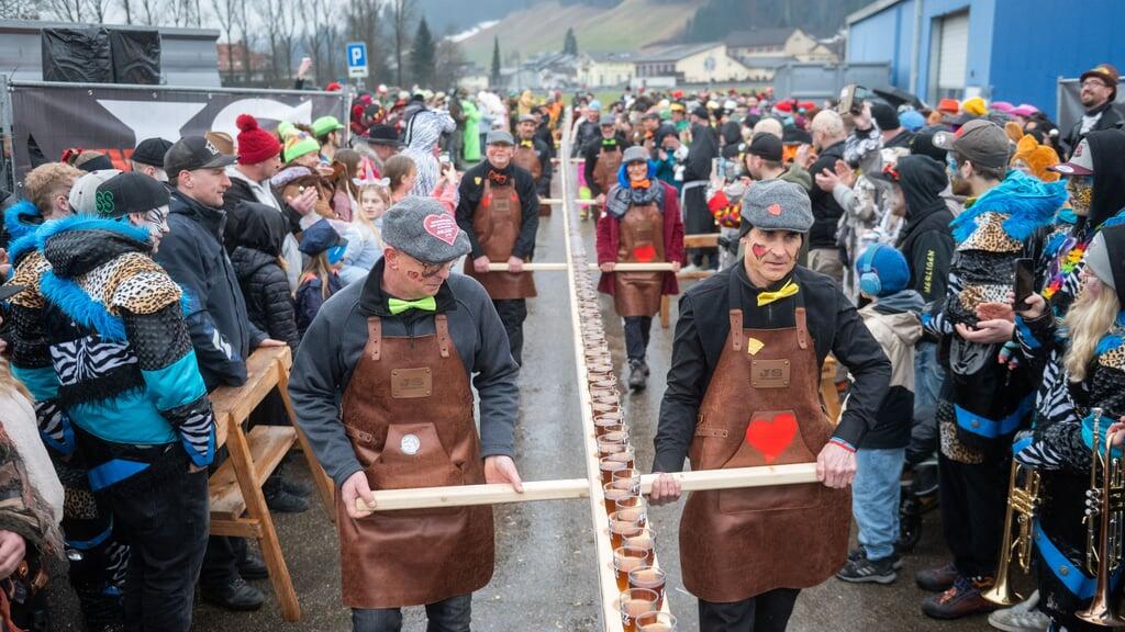 Wenn die Fasnacht auf Temperatur kommt, klirren die Gläser. «Kaffee Luz» heisst hier «Entlebucher Kafi» oder schlicht der «Schwarze». Das hiesige Nationalgetränk. Gehört dazu wie Blech und Pauke. Und weil die Guuggenmusig Jungschränzer Äschlismatt heuer 40 Jahre alt wird, tut sie das, was sie seit 1987 am liebsten tut: Mit Stil etwas Massloses auf die Beine stellen.