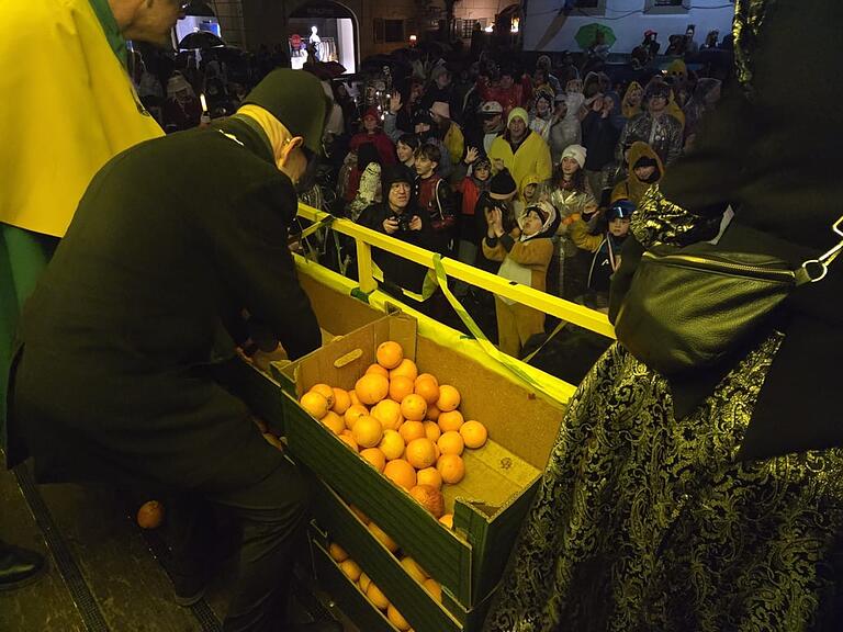 Eine Orange direkt vom Zunftmeister. Mit genug «Brüele» funktioniert das ganz gut.