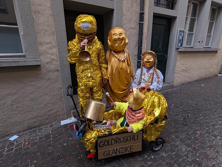 Diese Familie aus dem Kanton Schwyz hat sich ihr Gipfeli definitiv verdient. Zum ersten Mal waren sie heute trotz Regen an der Tagwach und geniessen jetzt die Guggenmusig.